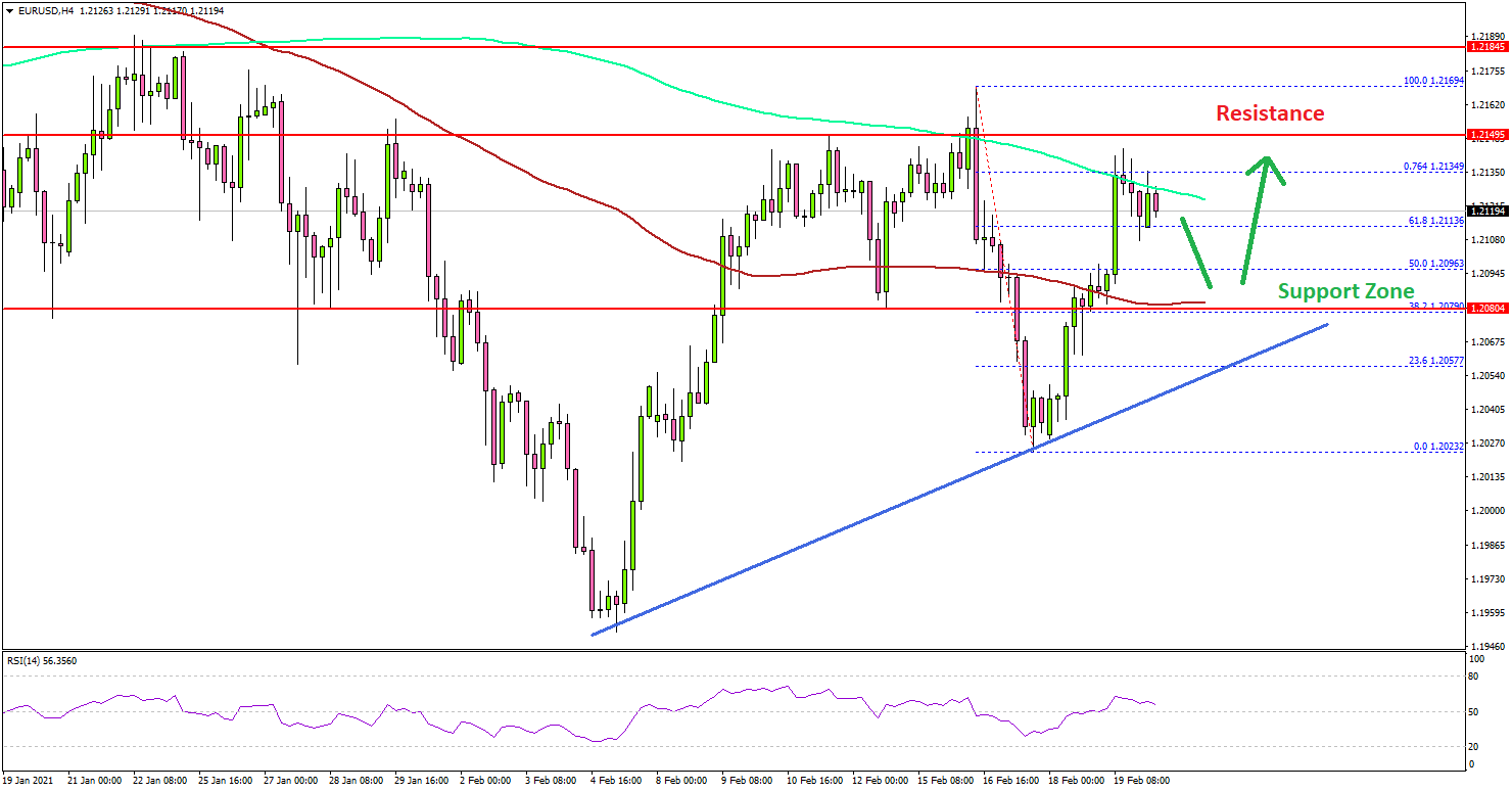 On the upside, the pair is facing a major resistance near 1.2150. A clear break above the 1.2150 zone could open the doors for a steady increase towards the 1.2200 level.
