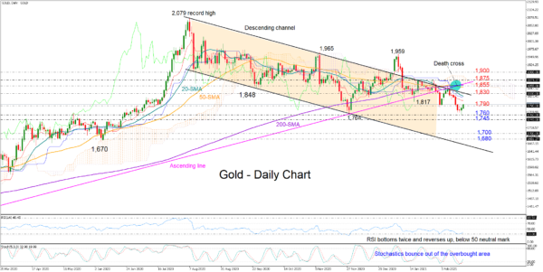On the upside, there are several barriers, which the bulls need to clear to in order to gain traders’ confidence. If buyers successfully breach the 1,790 hurlde, the red Tenka-sen line at 1,809 could block the way towards the 20-day SMA and the key surface of the descending channel around 1,830. Slightly higher, the 50- and 200-day SMA could set another trap with the help of the restrictive ascending line around 1,855, while beyond that, the 1,875 resistance from January may be the next trouble before all attention shifts to 1,900.