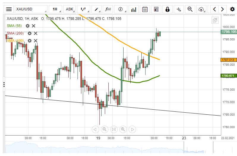 In the meantime, note that yellow metal could face the resistance formed by the 200-hour SMA near 1,809.00. Thus, the price for gold could trade sideways, supported by the 55– and 100-hour SMAs in the 1,785.00 area.
