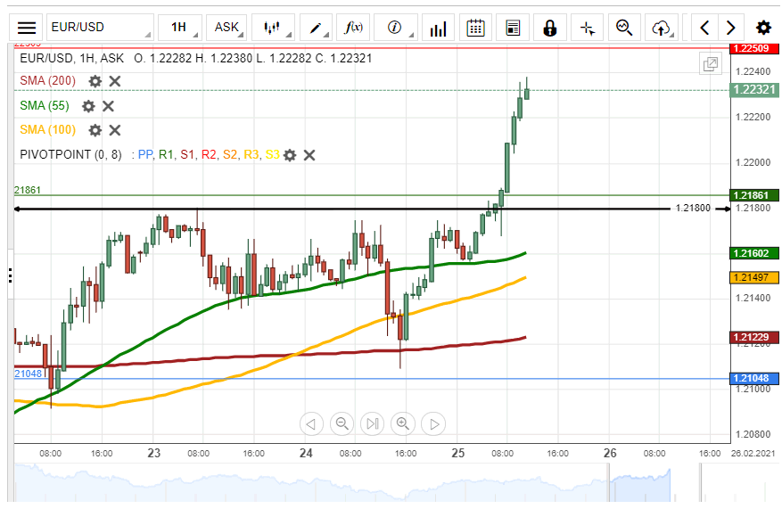 During Thursday morning hours, the EUR/USD currency pair jumped to the 1.2220 level.