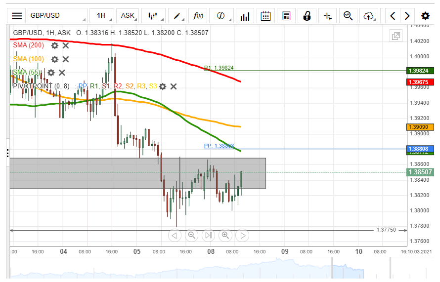 On the other hand, if the SMA fails, the pair might continue to trade sideways in the large range between 1.3775 and 1.3870.