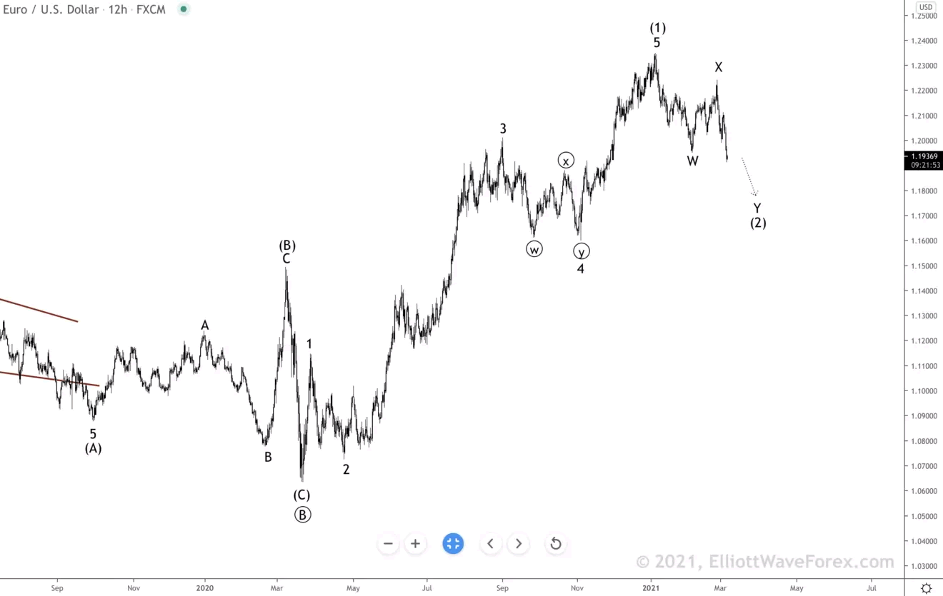 The market is still declining this week, so wave Y of (2) is already underway. In this case, we should be ready for a massive decline in the coming days, possibly toward the low of wave 4 of (1). As you can see on the weekly chart below, the opportunity to have a third-wave advance remains in place, but we should wait for the ending of the ongoing downward correction.