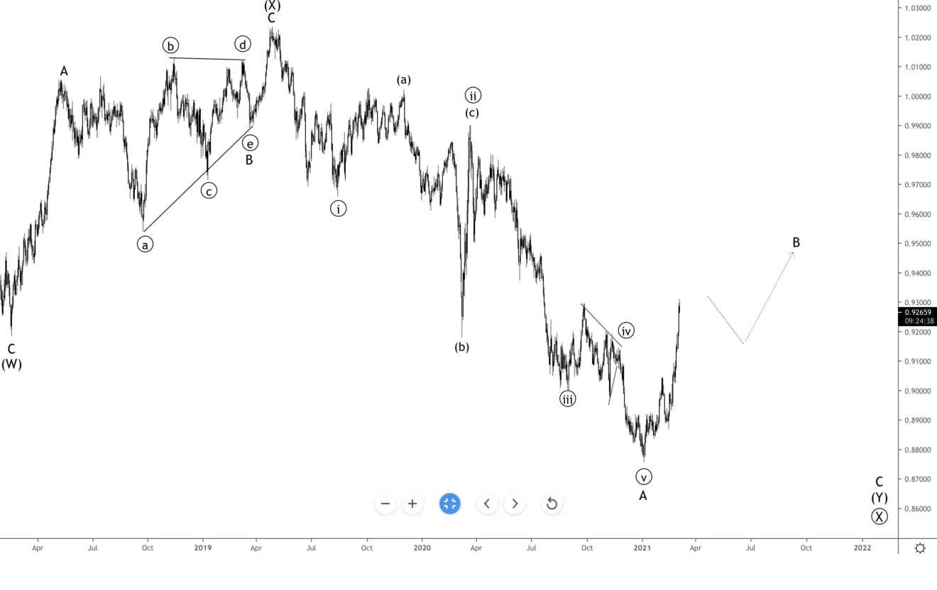 The market continue rising, that’s why I adjusted the wave count. It seems like wave A is over, so a wave B correction might be already underway.. In this case, the price is going to moving sideways in the days to come. Broadly, the pair should continue unfolding a zigzag for wave Y of ((X)).