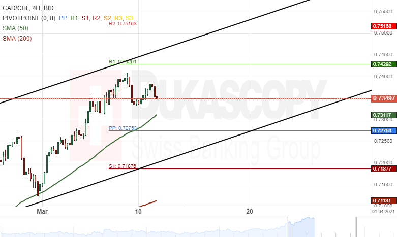 The Canadian Dollar has surged by 4.01% against the Swiss Franc since March 1. The CAD/CHF currency pair tested the 0.7400 level during this week’s trading sessions.