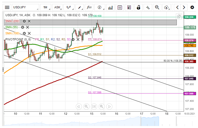In the near term future, the pair was expected to look for support at the 108.87 level. At that level the weekly simple pivot point and the 55 and 100-hour simple moving averages could provide support. Meanwhile, it was spotted that the 109.00 mark was providing support on Monday morning. This level should be first passed before reaching the mentioned technical levels.