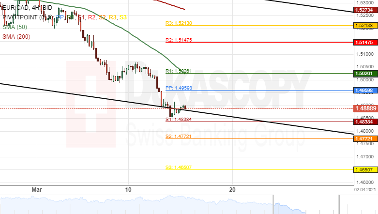 The single European currency has declined by 2.45% against the Canadian Dollar since the beginning of March. The currency pair tested the 1.4900 level during last week’s trading sessions.