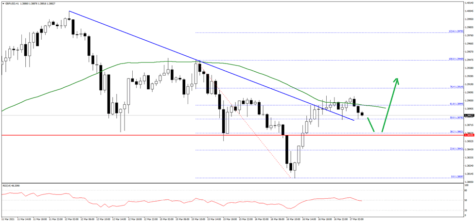There was also a break above a key bearish trend line at 1.3890 on the hourly chart. However, the pair is now facing resistance near the 1.3900 zone and the 50 hourly simple moving average.