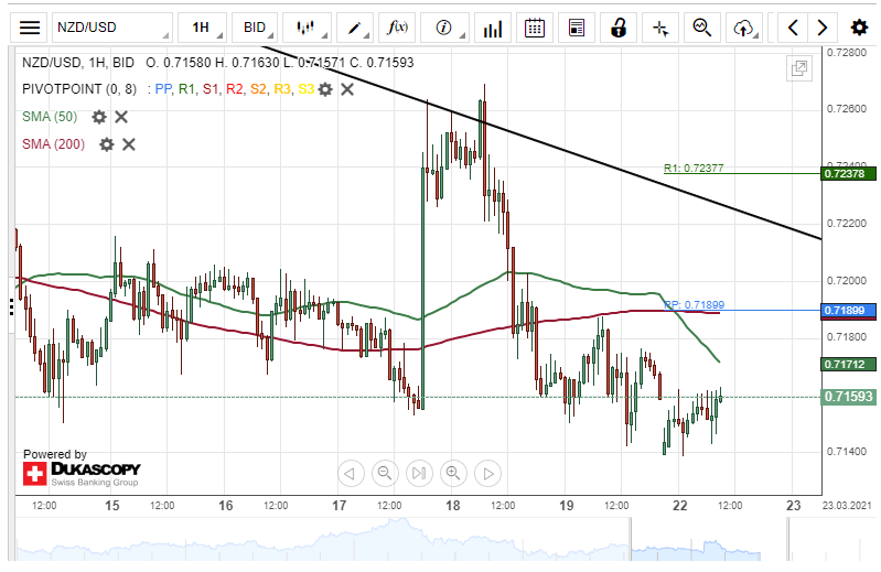 However, the currency exchange rate might make a brief retracement towards a resistance cluster at 0.7189 today.