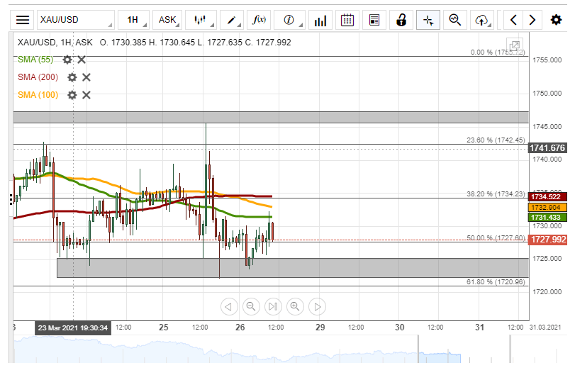 The yellow metal continued to trade sideways in a wide range. On Friday, analysts marked the borders of the zone. From above, the rate is facing resistance from 1,745.55 to 1,747.30. From below, a support zone is located at 1,722.20/1,725.30.