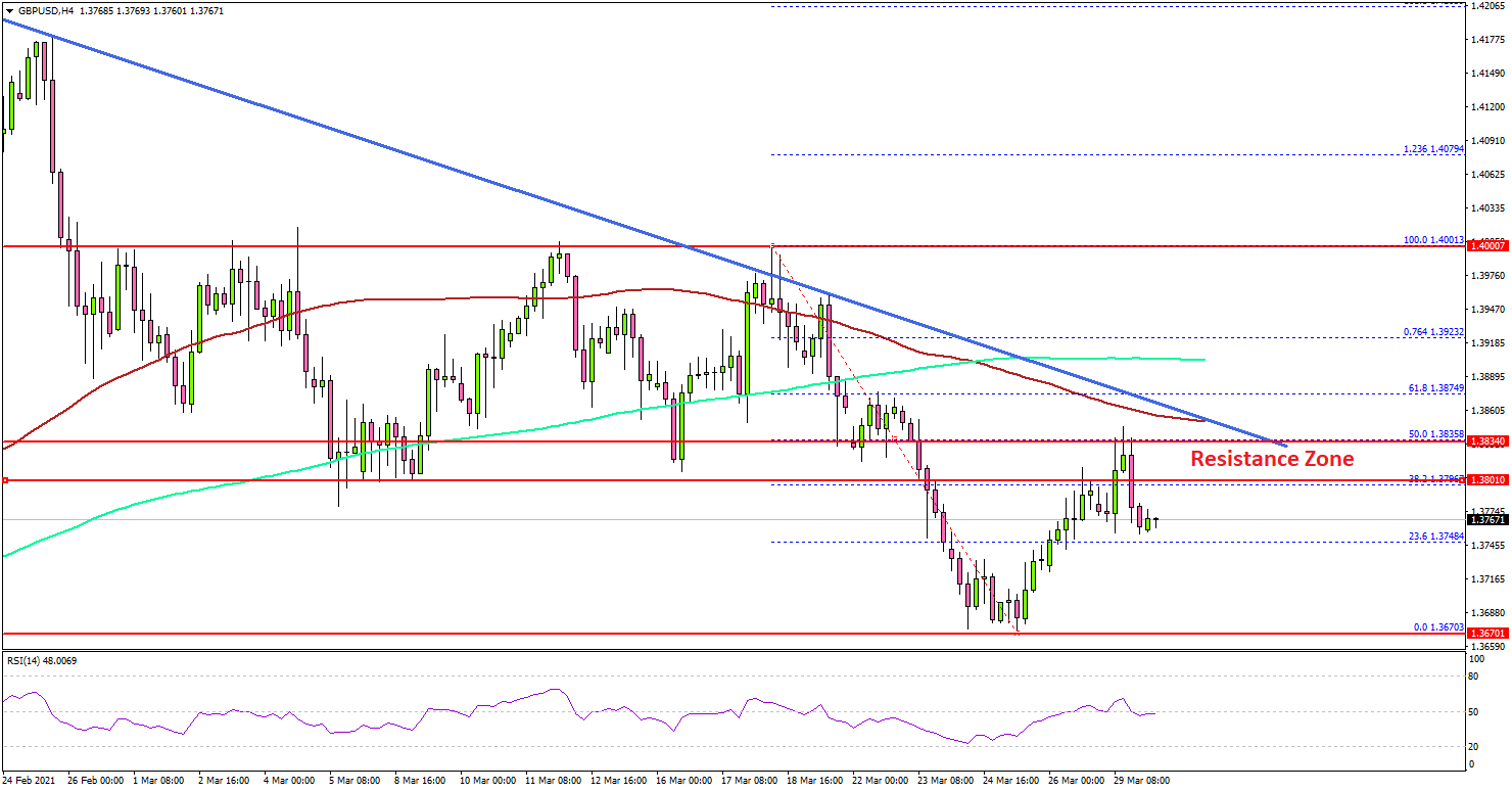 Looking at the 4-hours chart, the pair started a decent increase above the 1.3700 and 1.3750 levels. The pair even broke a crucial resistance near 1.3800 (the last breakdown zone).