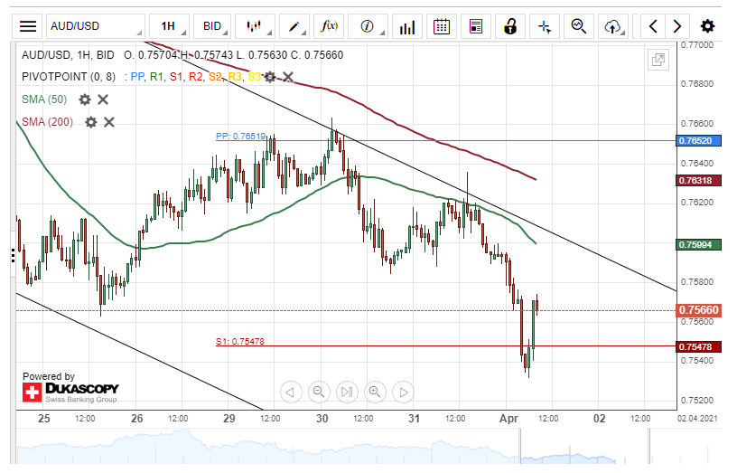 However, the weekly S1 at 0.7547 could provide support for the currency exchange rate during the following trading session.
