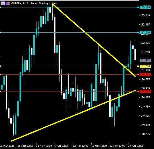If the GBPJPY pair trades below 151.20, sellers may test the 150.90 and 150.70 support levels.