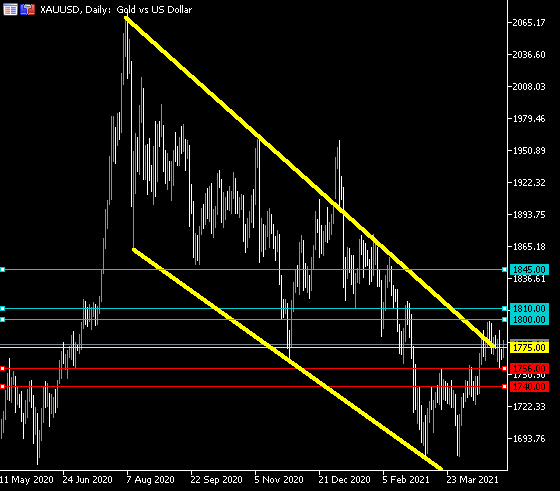 If XAUUSD trades below the $1,775 level, sellers may test the $1,756 and $1,740 support levels.