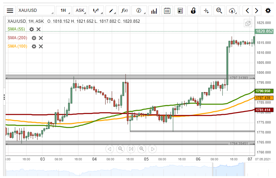 As soon as the yellow metal’s price passed the resistance of the 1,800.00 level, the price jumped by 0.80%. By the middle of Friday’s trading, the price had reached the 1,820.00 level.