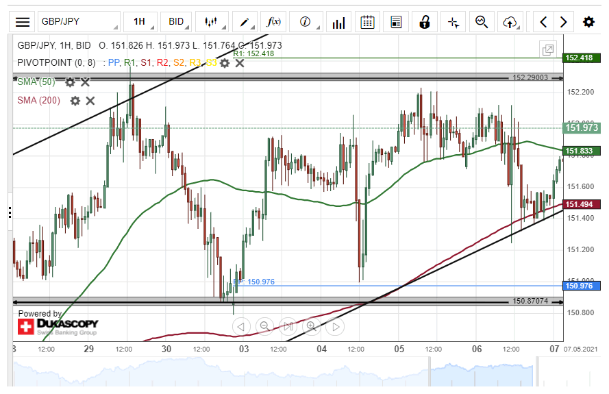 However, the 200– hour SMA at 151.50 could still provide support for the currency exchange rate in this session.