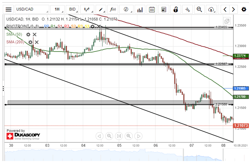 The US Dollar declined by 67 pips or 0.55% against the Canadian Dollar on Friday. The currency pair was pressured lower by the 50– hour simple moving average during Friday’s trading session.