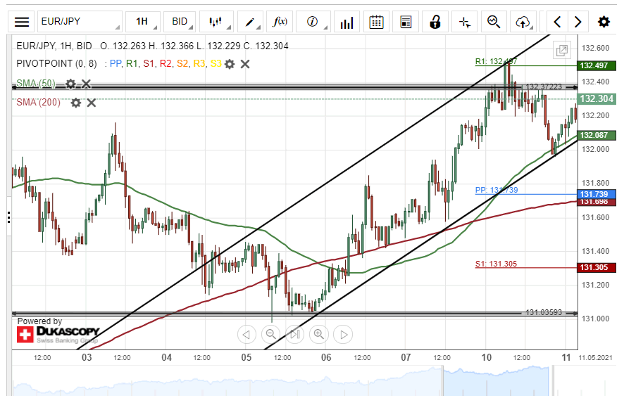 The exchange rate bounced off the 50– hour SMA at 132.00 during the Asian session on Tuesday. Most likely, the EUR/JPY currency pair could edge higher within today’s session.