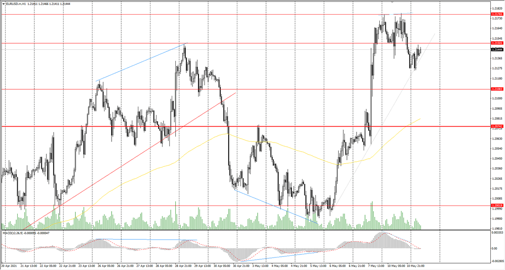 The EUR/USD currency pair was flat on Monday. Most of the time the price moved sideways and only at the end of the American session it went down, breaking through the support level of 1.2150.