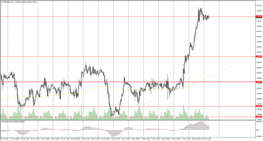 At the moment, the sellers managed to bring the price back below the level of 1.4126. Considering the price deviation from the moving average, traders should expect a corrective down wave to the support levels.