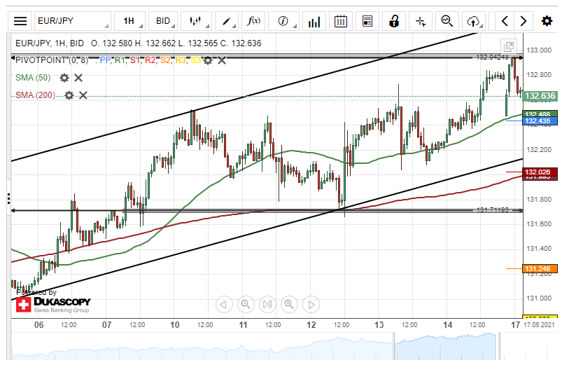 The Eurozone single currency surged by 58 pips or 0.44% against the Japanese Yen on Friday. The currency pair breached the resistance level at 132.04 during the Asian session on Monday.