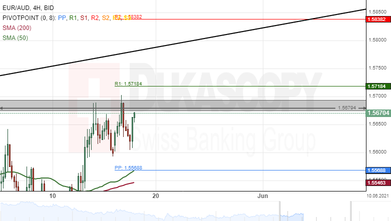 All things being equal, the exchange rate could continue to edge higher during the following trading sessions. The potential target for the EUR/AUD pair will be near the weekly R2 at 1.5838.