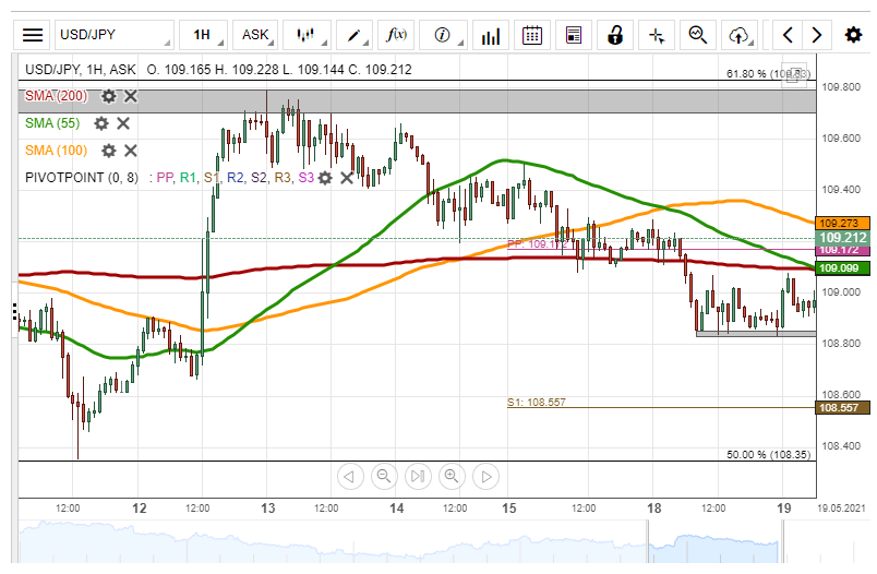 At mid-day on Wednesday, the USD/JPY currency exchange rate passed the resistance of the 55 and 200-hour simple moving averages at 109.10. Previously, the rate’s decline found support in the 108.85 level, which kept the rate from declining throughout most of Tuesday.