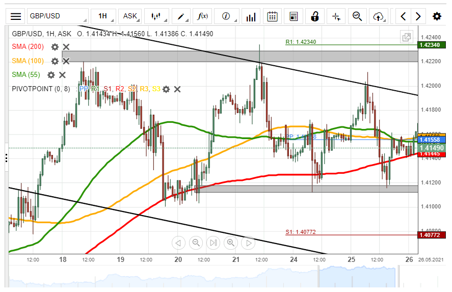However, a support line at 1.4120 could provide support for the currency exchange rate during the following trading session.