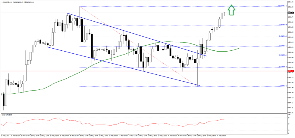 There was a clear break above a major declining channel with resistance near the $1,894 on the hourly chart. It even cleared the $1,900 resistance and settled well above the 50 hourly simple moving average.