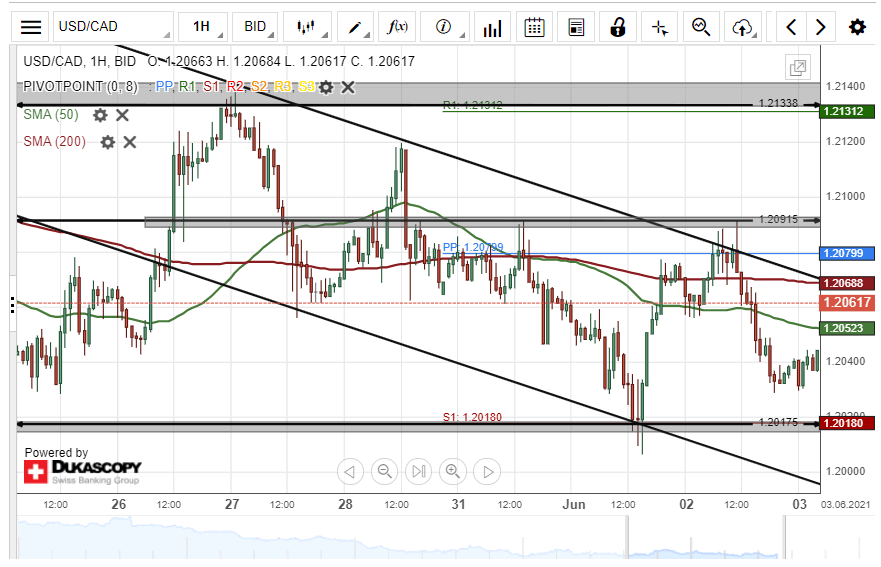 The US Dollar declined by 56 pips or 0.46% against the Canadian Dollar on Wednesday. The currency pair breached the 50– and 200– hour SMAs during yesterday’s trading session.
