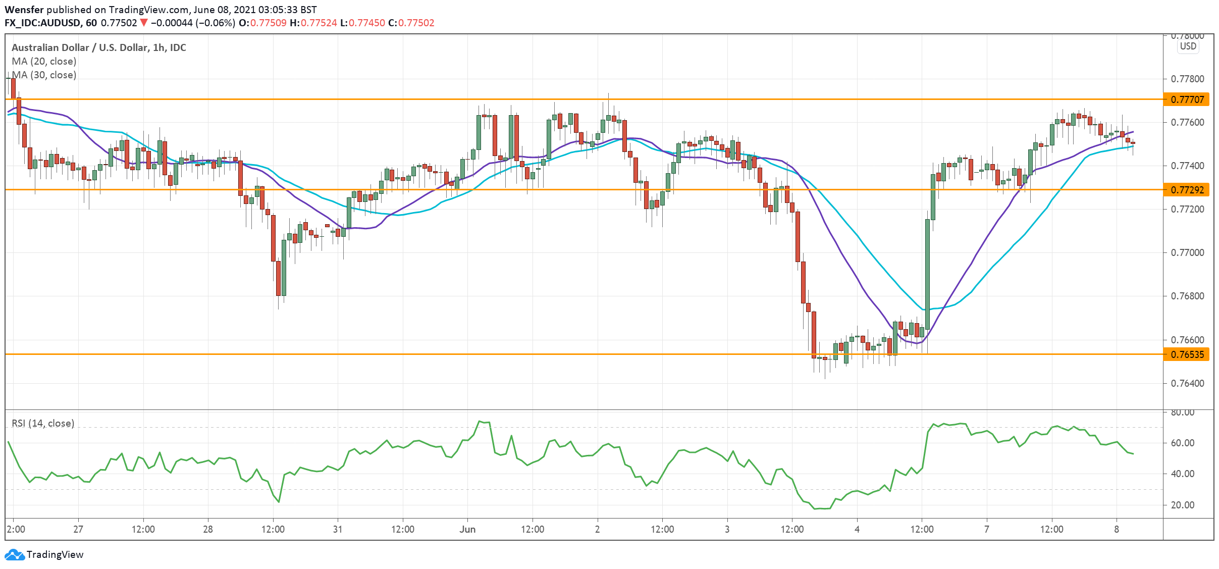 The zone around 0.7730 has turned into a support. After the RSI drops from its overbought condition, a break above 0.7770 could trigger a runaway rally towards 0.7850.