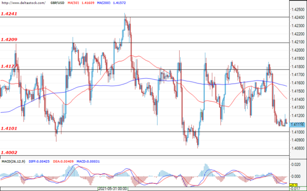 The currency pair continues to trade in the narrow range between 1.4101 and 1.4209, but the forecasts are for a breach of the lower limit of this range and a subsequent decline. This lower limit at 1.4101 is acting as a critical support. In the upward direction, the first resistance is the level of 1.4177, followed by the upper limit of the range at 1.4209
