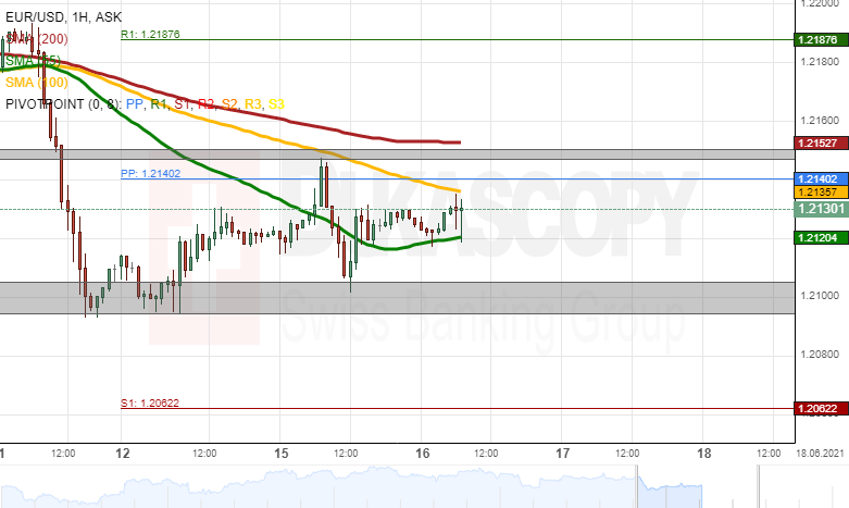 The EUR/USD bounced off the support of the zone above the 1.2100 level and started a recovery, which ended at the 1.2130 level. On Wednesday, the pair was trading sideways between the 55 and 100-hour simple moving averages, which were located at 1.2120 and 1.2136.