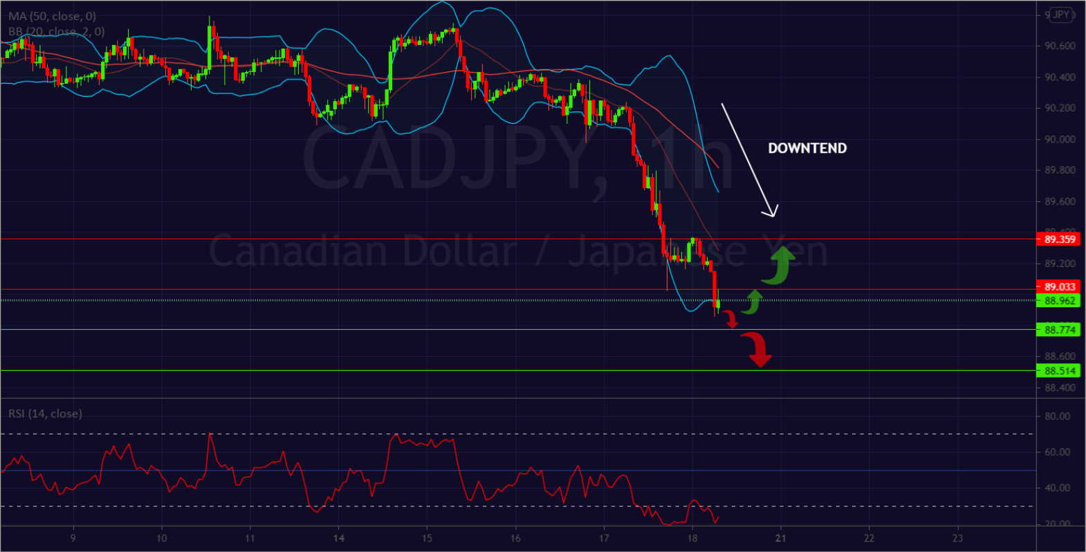 CADJPY fell to 89.033. The pair is bearish in the midterm.