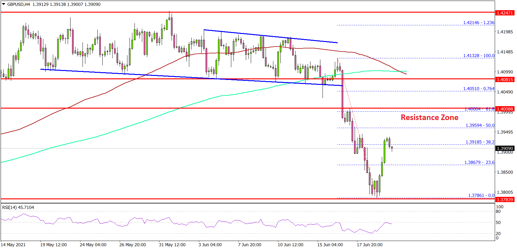 The British Pound declined heavily below the 1.4000 support against the US Dollar. GBP/USD even traded below the 1.3850 support level before it started an upside correction.