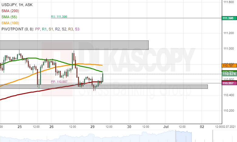 Since Monday’s trading hours, the USD/JPY currency exchange rate has been fluctuating above the 110.50 marks. By large, the situation had not changed, as the rate remained between the support cluster near 110.50 and the resistance of the 55 and 100-hour simple moving averages.