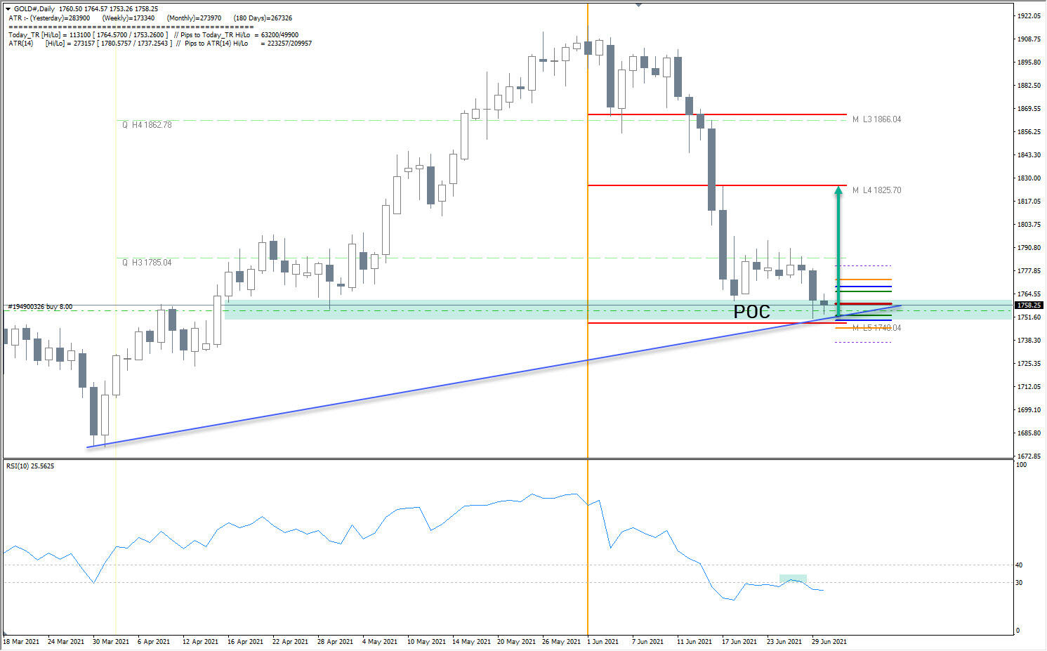 We can see that the 1750 zone is important for institutions. This is where we have had buy orders in the past. Additionally, it is the M L5 support and we can expect the bounce. The RSI has bounced above 30 and every time it does the price goes up. We could see 1785 and 1825 as targets.