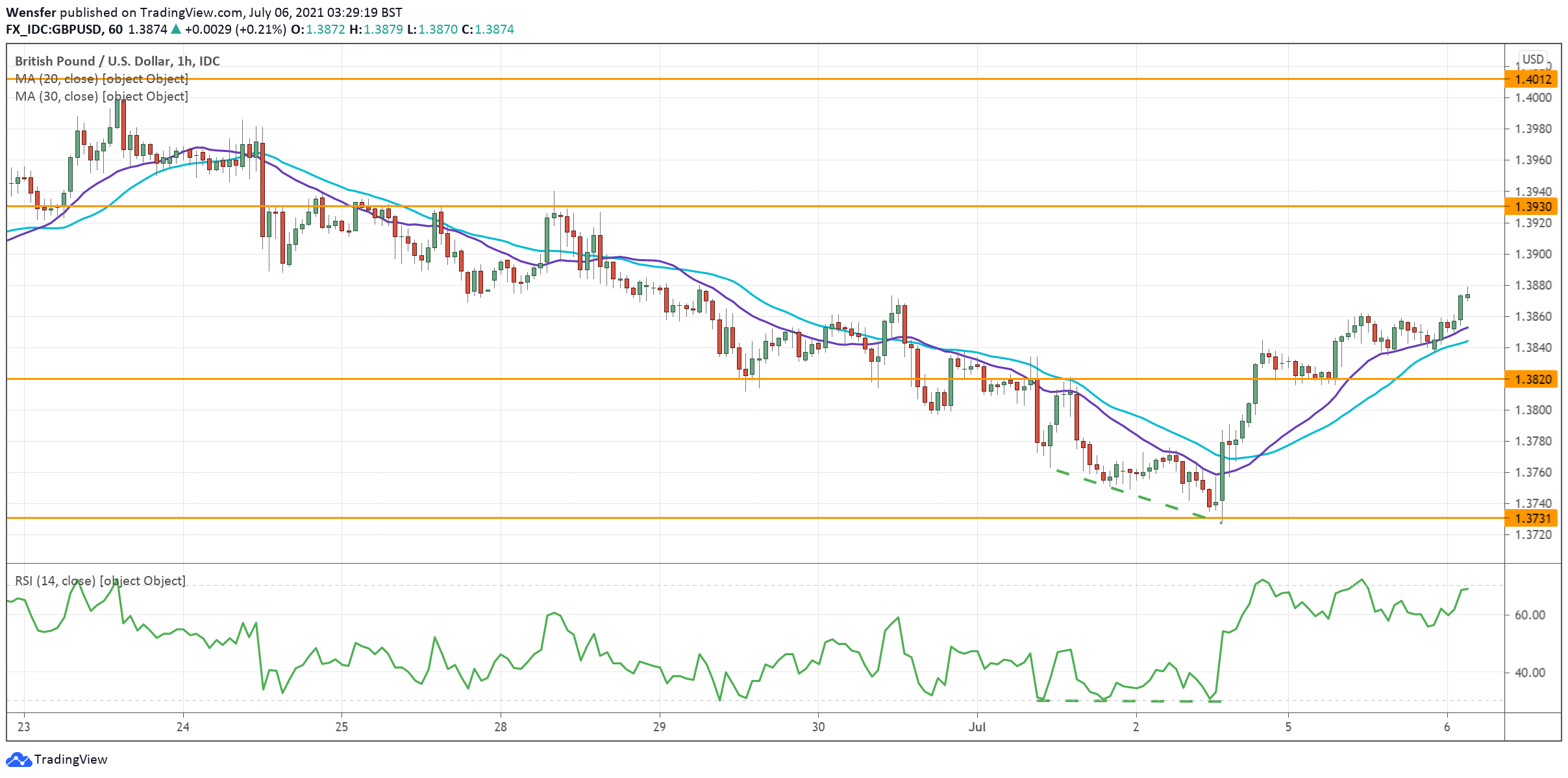The rally above 1.3820 suggests that sellers have started to take profit. Strong upward momentum is the first sign of a potential reversal. A bullish MA cross may attract more buyers to fuel the rebound.