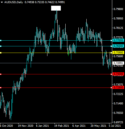 The AUDUSD pair is only bearish while trading below the 0.7590 level, key support is found at the 0.7400 and 0.7280 levels.