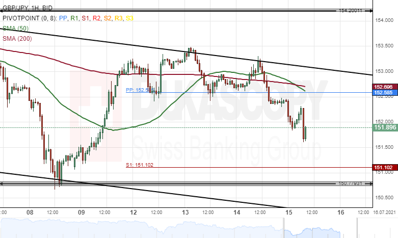 However, the weekly support level at 151.10 might provide support for the currency exchange rate within this session.