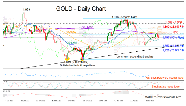 Gold started the week on a slightly negative note, aiming to extend Friday’s pullback from the 200-day simple moving average (SMA) towards the 1,800 level.
