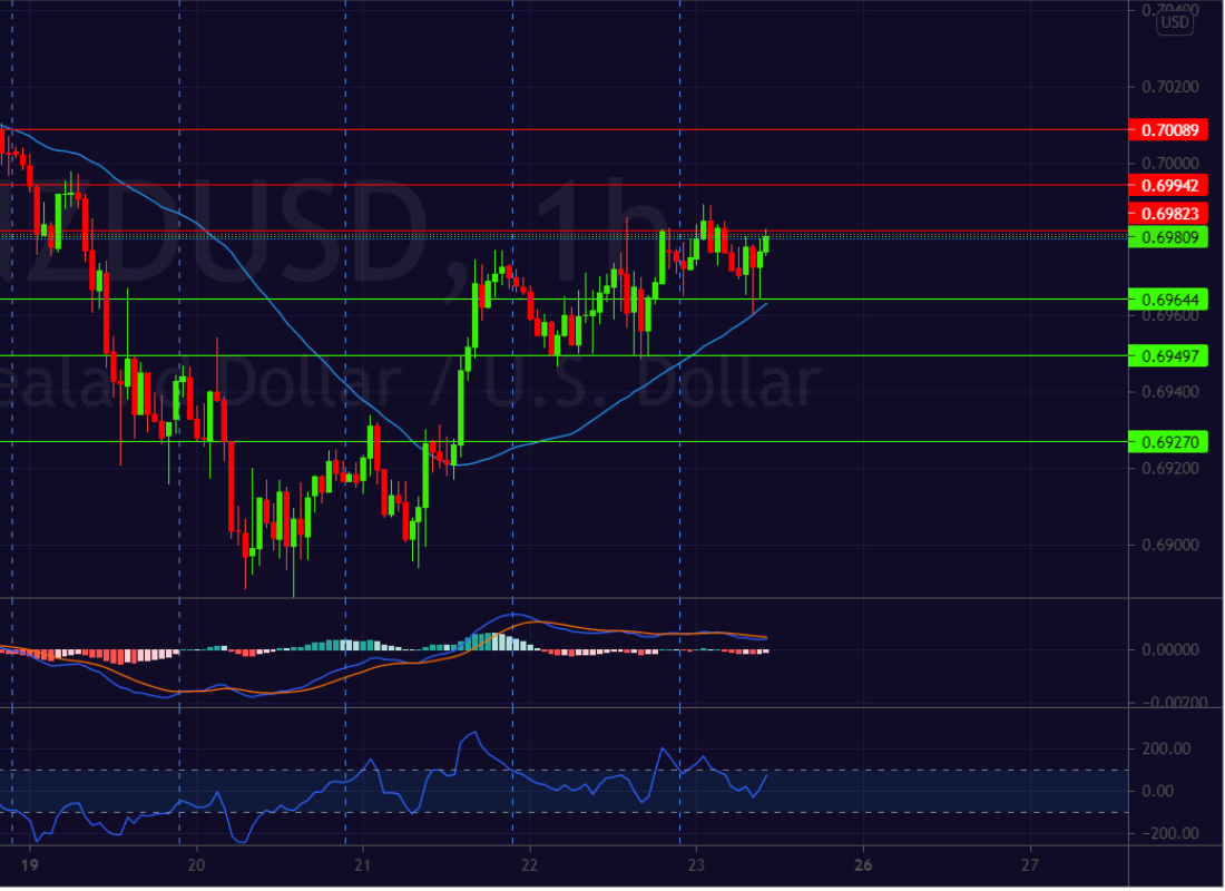 If the pair manages to surpass the first resistance level, we should expect a continued surge towards the second resistance level of 0.69942.