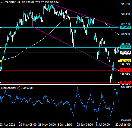 The CADJPY pair has formed negative price divergence on the Momentum indicator across the four-hour time frame during its recent recovery.