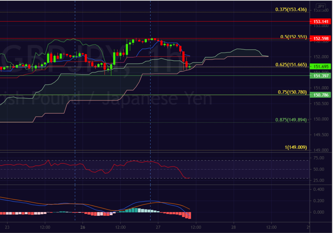 In our most likely scenario, GBPJPY may experience a downwards correction towards the first support level of 151.397.