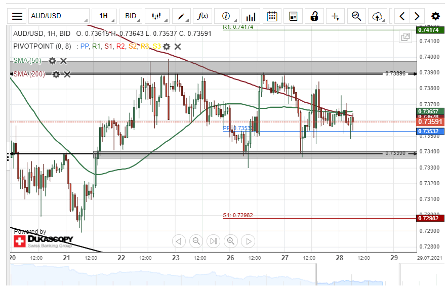 However, the weekly support level at 0.7353 could provide support for the currency exchange rate within this session.