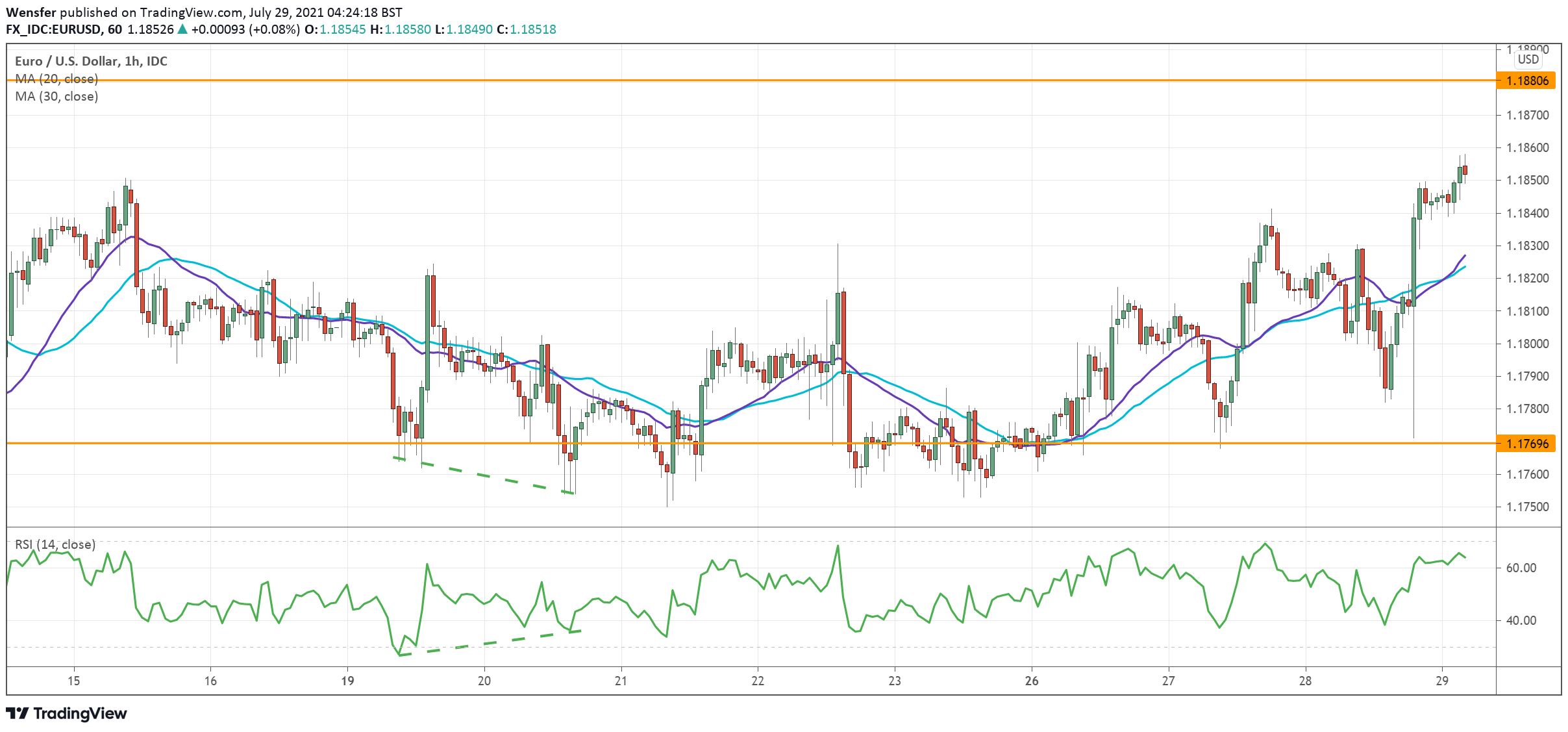 The RSI divergence was a giveaway that the sellers may have taken their feet off the pedals. The break above 1.1820 suggests that buyers were trying to get back into the game.