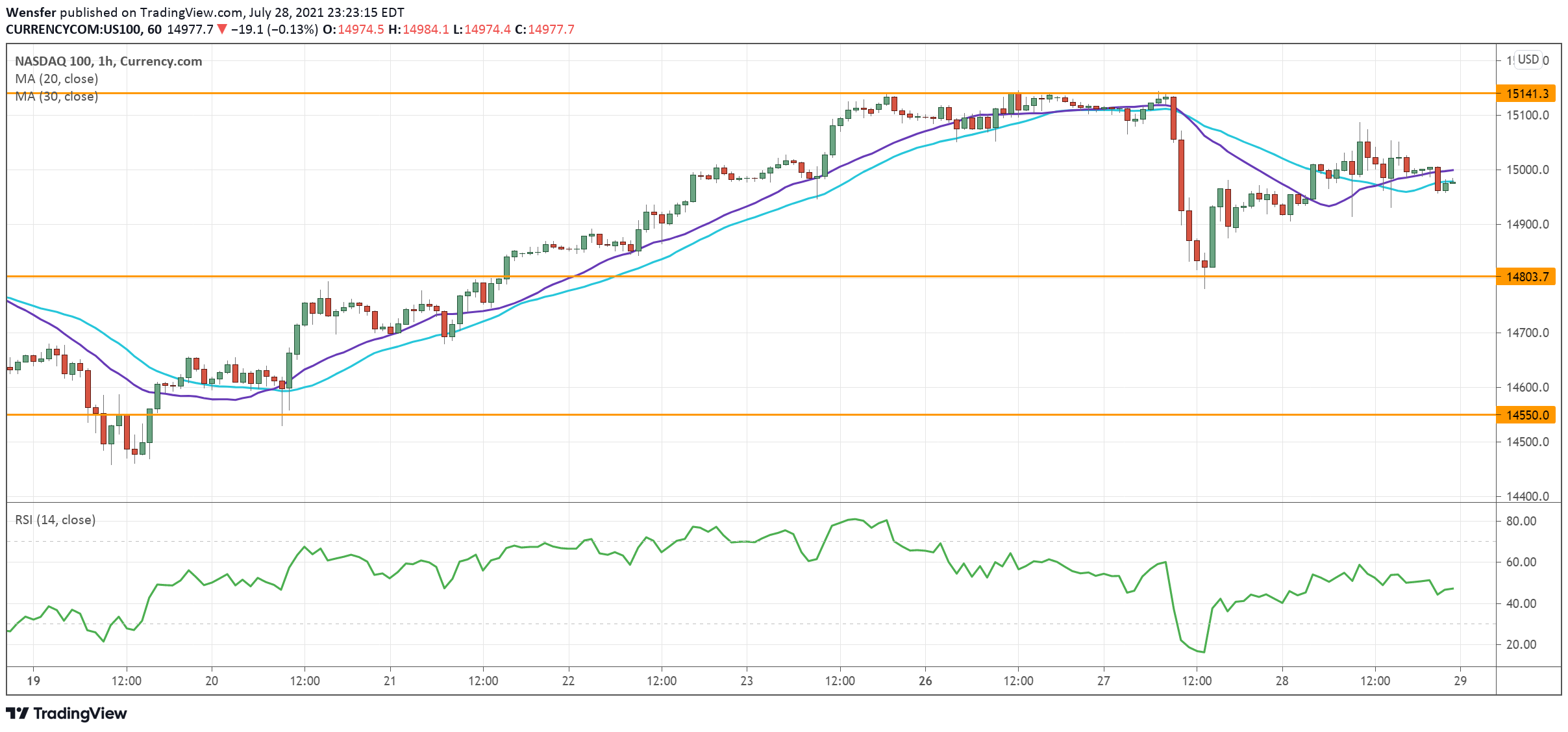 The Nasdaq 100 recovers from profit-takings as investors continue to digest Q2 earnings.