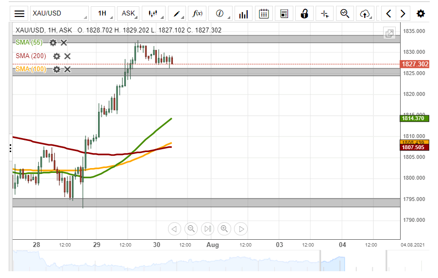 However, a decline below the support zone near 1,825.00 could look for additional support in the 55, 100 and 200-hour simple moving averages at 1,815.00 and near 1,808.00.