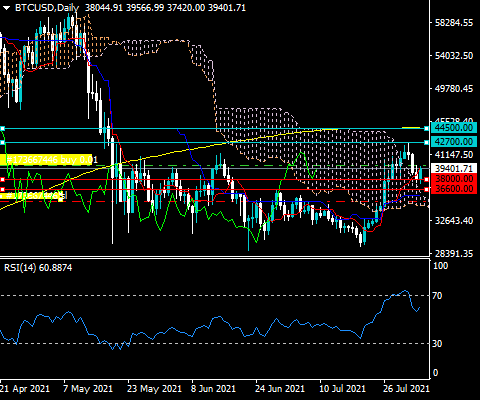 Alternatively, the BTCUSD pair may drop towards the $37,000 support area and then stage a big counter rally towards the $42,700 level.