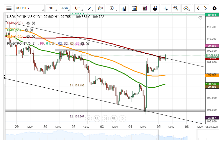 The USD/JPY pair bounced off the lower boundary of a descending channel pattern at 108.80 on Wednesday. As a result, the US Dollar edged higher by 83 pips or 0.77% against the Japanese Yen during Wednesday’s trading session.