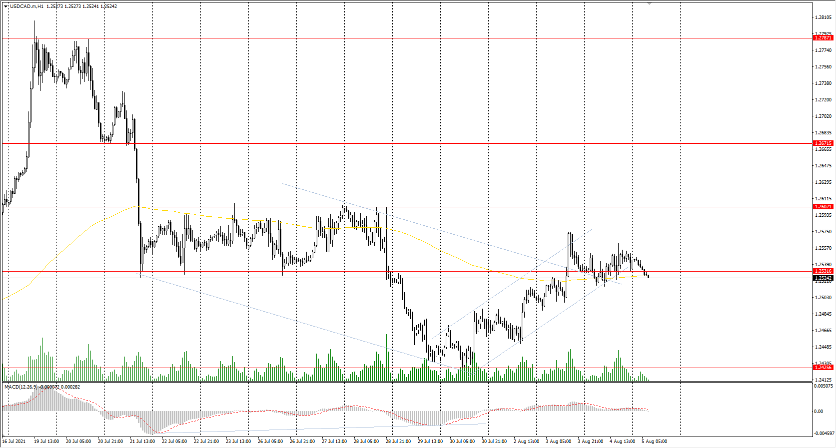 Considering technical analysis, the USD/CAD trend is bearish. The MACD indicator is inactive. Under such market conditions, traders should look for sell positions from the resistance levels after sellers show initiative. There are no optimal points for buy positions right now.